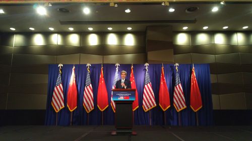 美中战略与经济对话结束后,克里在北京金茂威斯汀酒店单独召开新闻发布会