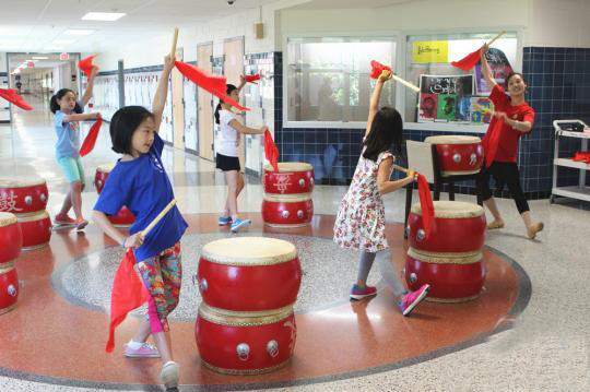 美国华裔青少年学习盘鼓。