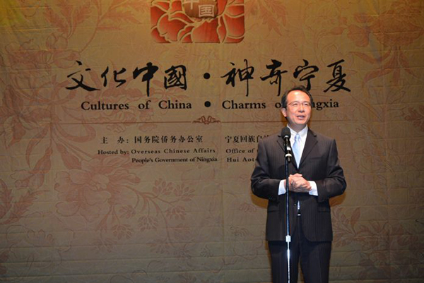 洪磊总领事在致辞中热烈欢迎“文化中国·神奇宁夏”巡演团来美演出,感谢巡演团在中秋佳节即将来临之际为在美国的侨胞送来祖国的祝福和关爱,也为美国朋友带来中国文化盛宴。