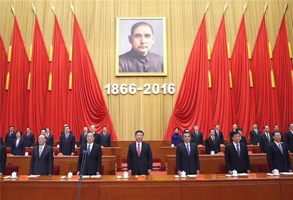 11月11日,纪念孙中山先生诞辰150周年大会在北京人民大会堂隆重举行。习近平、李克强、俞正声、刘云山、王岐山、张高丽等出席大会。鞠鹏摄