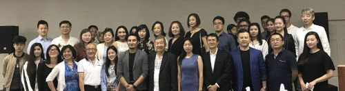 库尔班江(前排左7)、中国驻洛杉矶总领事馆发言人于丹领事(前排右5)、政治组樊满江领事和海外新疆人协会、新疆教育基金会成员进行了交流。