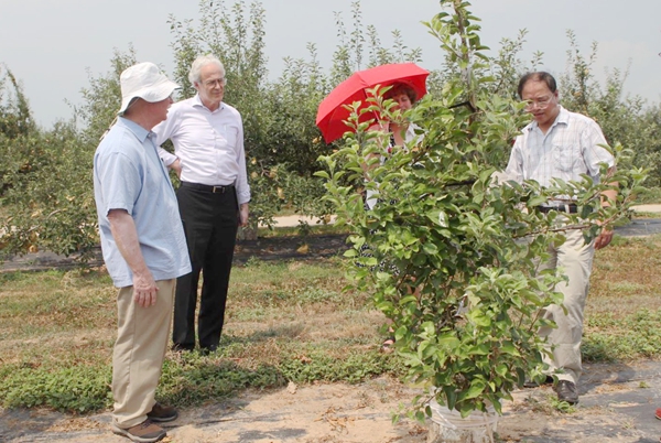 期间,代表们与新农村发展研究院有关人员进行了座谈,就今年9月中美大学农业推广联盟在我校召开第三届“现代农业推广与技术转移国际会议”相关事宜进行了商议。David Hannaway教授还与动科学院和林学院相关专家教授进行了座谈交流,两校将在林学、草学和畜牧方面教师建立长期的科研合作与交流,设立常态化的本科生和研究生的交流互访学习机制。来访客人还考察了我校火地塘林场和白水苹果试验站。