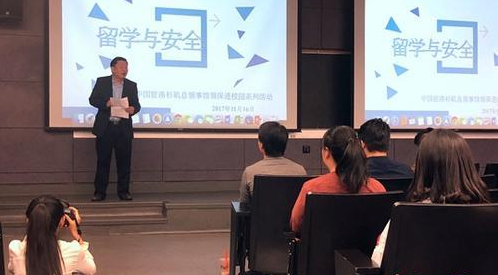 代双明携领侨组领事周咏梅、教育组领事柴海鹰等多位总领馆有关负责人以及法律专家,对中国留学生进行安全提示、介绍国家优秀自费留学生奖学金及“春晖杯”中国留学人员创新创业大赛等项目并发放《中国领事保护和协助指南》。南加大公共安全等部门负责人也来到现场,表示将尽全力保护学生安全。