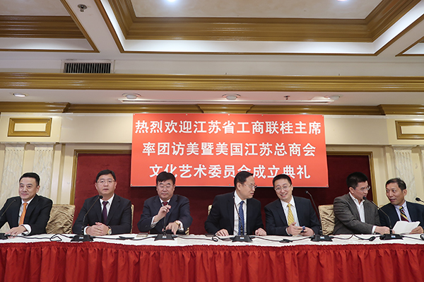 随后,江苏省工商联桂德祥主席致辞。他说,中国现在正在崛起,中国的经济发展也飞速前行。作为中国最发达的省份之一,江苏经济总量在去年达到七万六千亿人民币,位居全国第二。此次访美活动暨江苏总商会文艺委员会成立对江苏经济的内外发展都具有很大的意义。