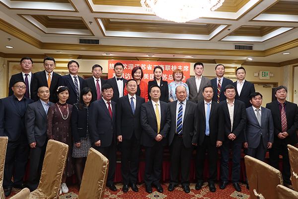 出席晚宴的嘉宾(江苏工商联代表团代表、中国驻洛杉矶总领事馆副总领事孙鲁山、美国江苏总商会代表)