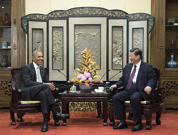 11月29日,国家主席习近平在北京钓鱼台国宾馆会见美国前总统奥巴马。