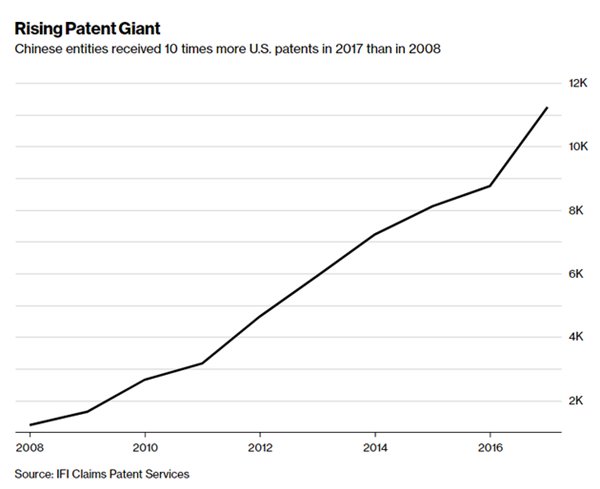 日前,据彭博社报道,在过去不到10年间,中国企业在美国获得的专利数量翻了十倍。作为世界第二大经济体,中国一直在努力转型,希望从硅谷的工厂变成研究基地。
