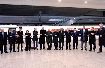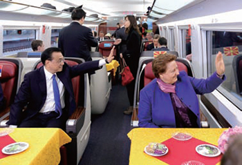 中国国务院总理李克强邀请来华出席第四次中国—中东欧国家领导人会晤的中东欧国家领导人共同乘坐中国高铁