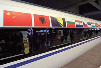 车身上,绘有中国与中东欧16国国旗和此次会晤的主场标志——结合了颐和园十七孔桥和苏州园林的亭子图案,象征着中国与中东欧国家建立的“16+1合作”之桥,还绘有“16+1>17”字样,寓意着中国与中东欧16国的“16+1”合作力量远远大于17。